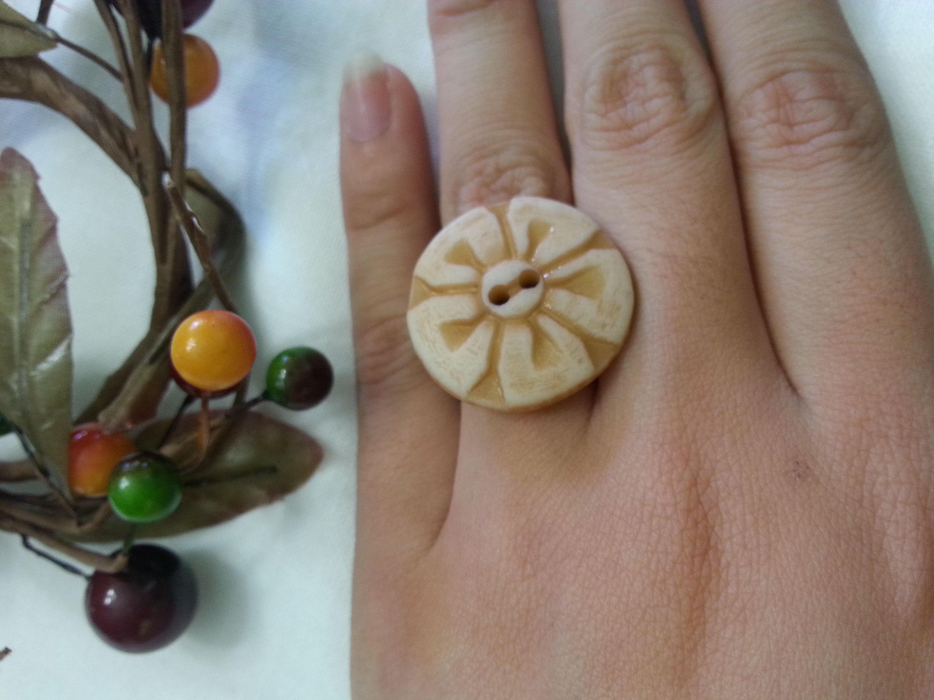 Rings and my other accessories are inspired greatly by literary works. Each item is handmade and rings are adjustable. Designs are limited to inventory at hand, unless otherwise requested by buyer. Materials used are either wood, metal clasps, ribbons, buttons, or different findings. I ship in 1-3 business days for items listed. Please leave a comment or feedback!
