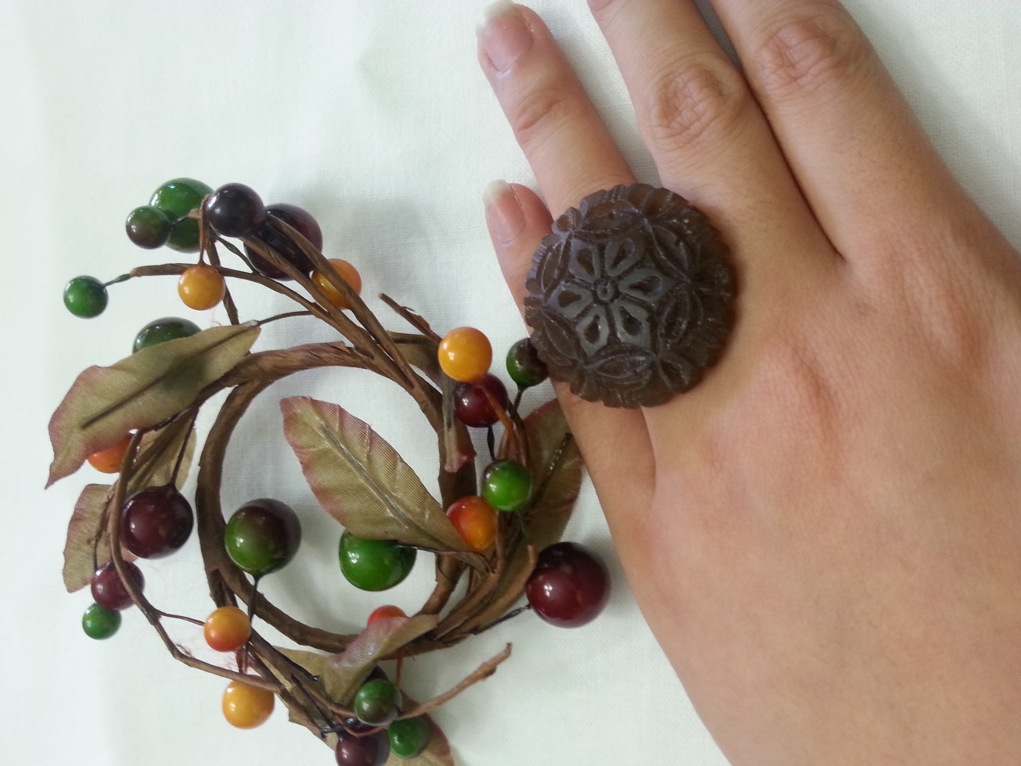 Each item is handmade and rings are adjustable. Designs are limited to inventory at hand, unless otherwise requested by buyer. Materials used are either wood, metal clasps, ribbons, buttons, or different findings. I ship in 1-3 business days for items listed. Please leave a comment or feedback!