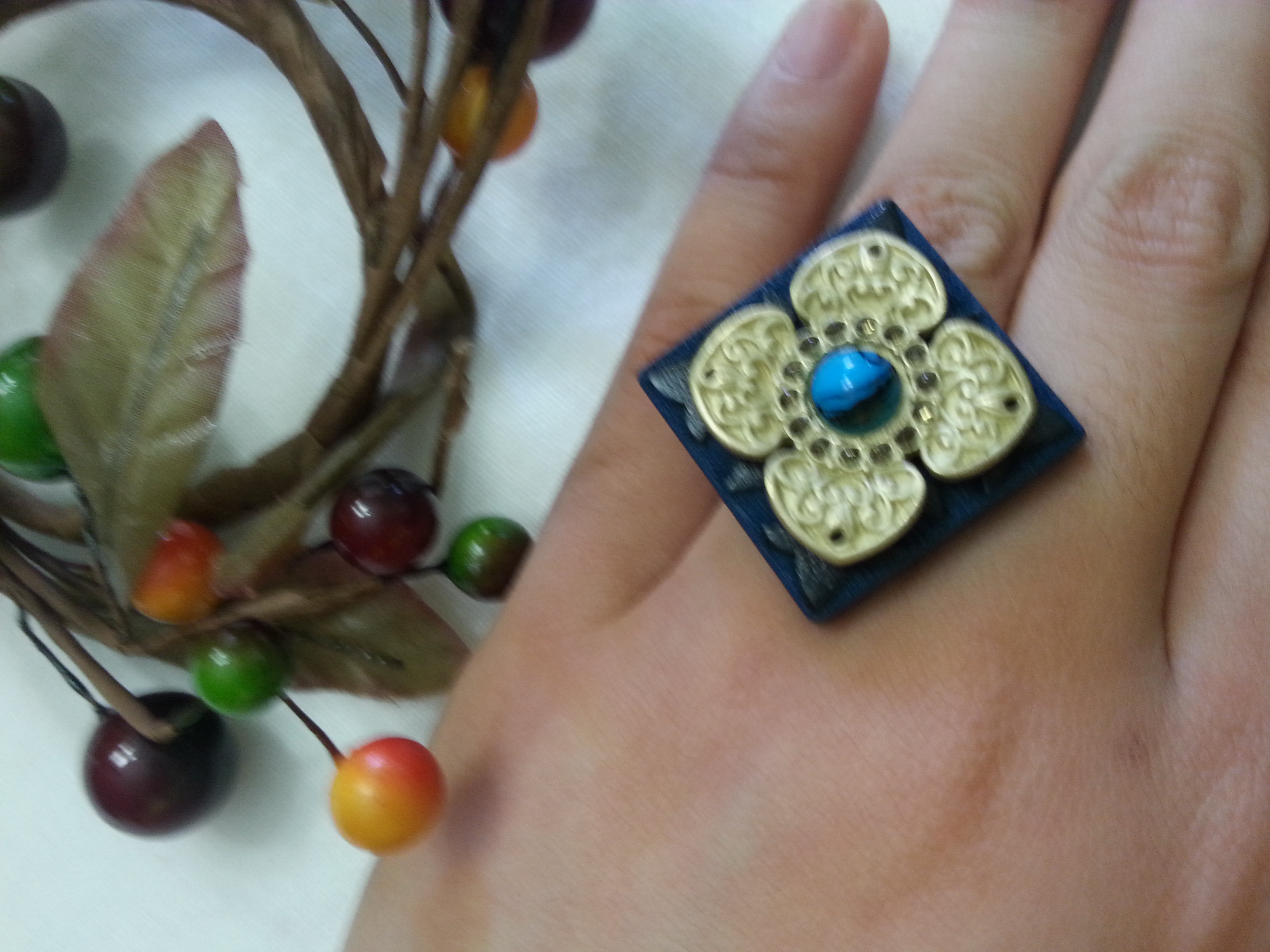 Each item is handmade and rings are adjustable. Designs are limited to inventory at hand, unless otherwise requested by buyer. Materials used are either wood, metal clasps, ribbons, buttons, or different findings. I ship in 1-3 business days for items listed. Please leave a comment or feedback!