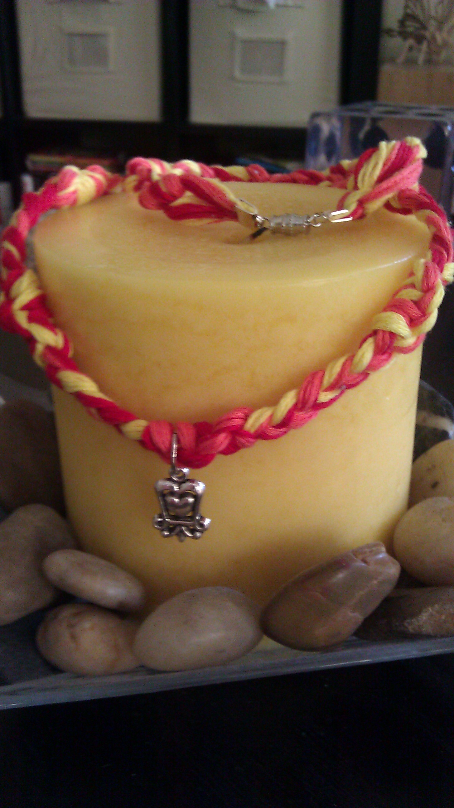 This necklace was handwoven using threads and silver findings. A silver heart pendant adds character to this simple yet fashionable necklace.