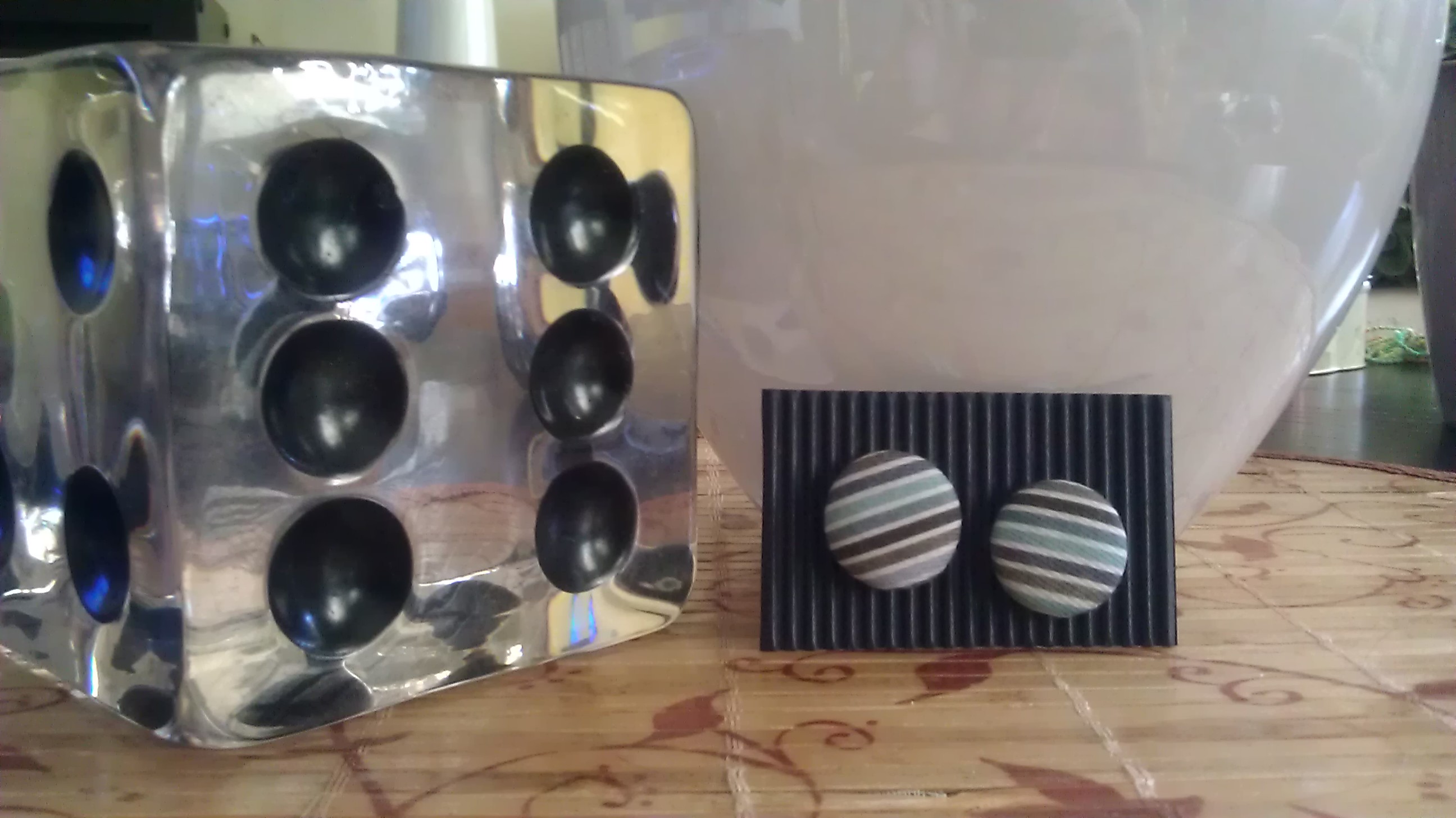 Fabric button earrings with streaks of shades of blue running across the round. Simple yet catchy to the eye.