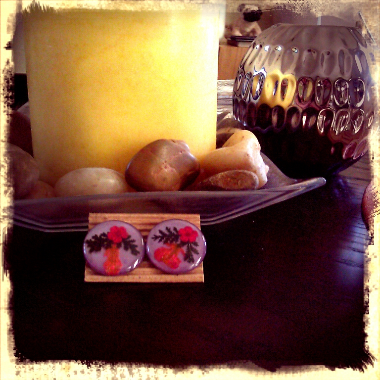 Each earring is handmade. Designs are limited to inventory at hand, unless otherwise agreed upon. Materials used are either wood, metal clasps, ribbons, buttons, or different findings. I ship in 1-3 business days for items (necklace and earrings) that are already premade. Leave a comment or a feedback!