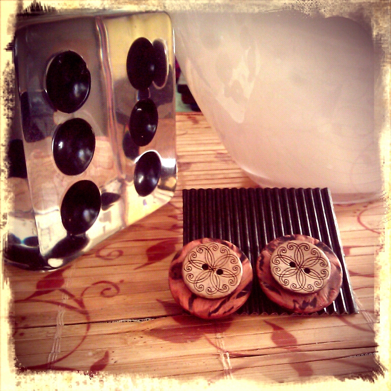 Each earring is handmade. Designs are limited to inventory at hand, unless otherwise requested by buyer. Materials used are either wood, metal clasps, ribbons, buttons, or different findings. I ship in 1-3 business days for items listed. Please leave a comment or feedback!