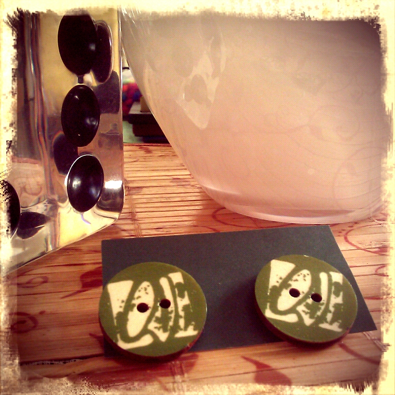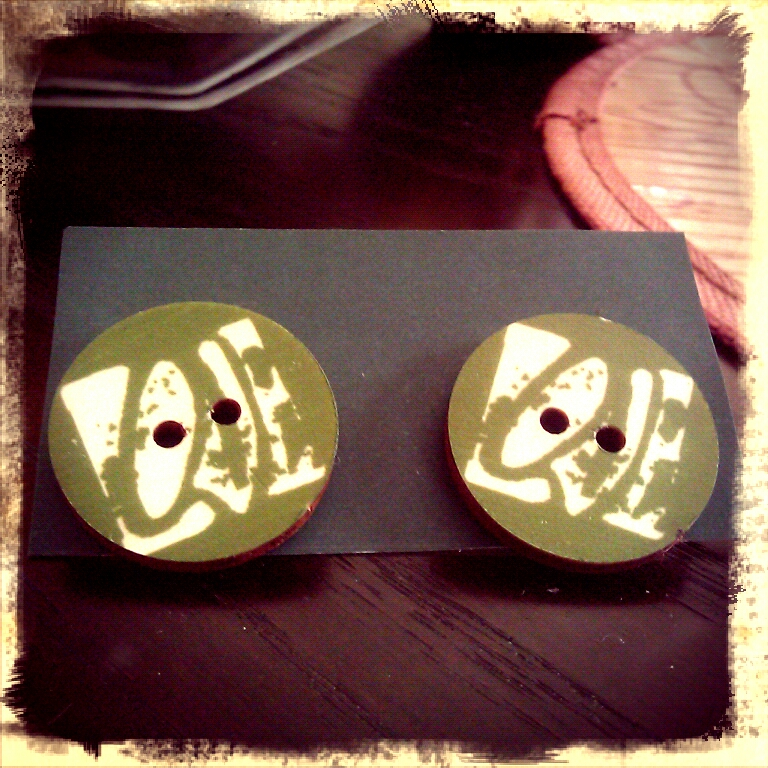 Each earring is handmade. Designs are limited to inventory at hand, unless otherwise requested by buyer. Materials used are either wood, metal clasps, ribbons, buttons, or different findings. I ship in 1-3 business days for items listed. Please leave a comment or feedback!